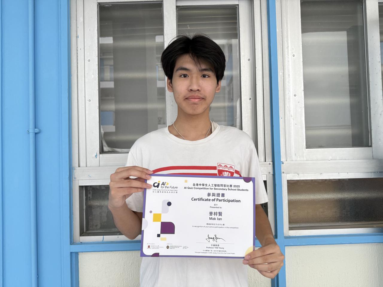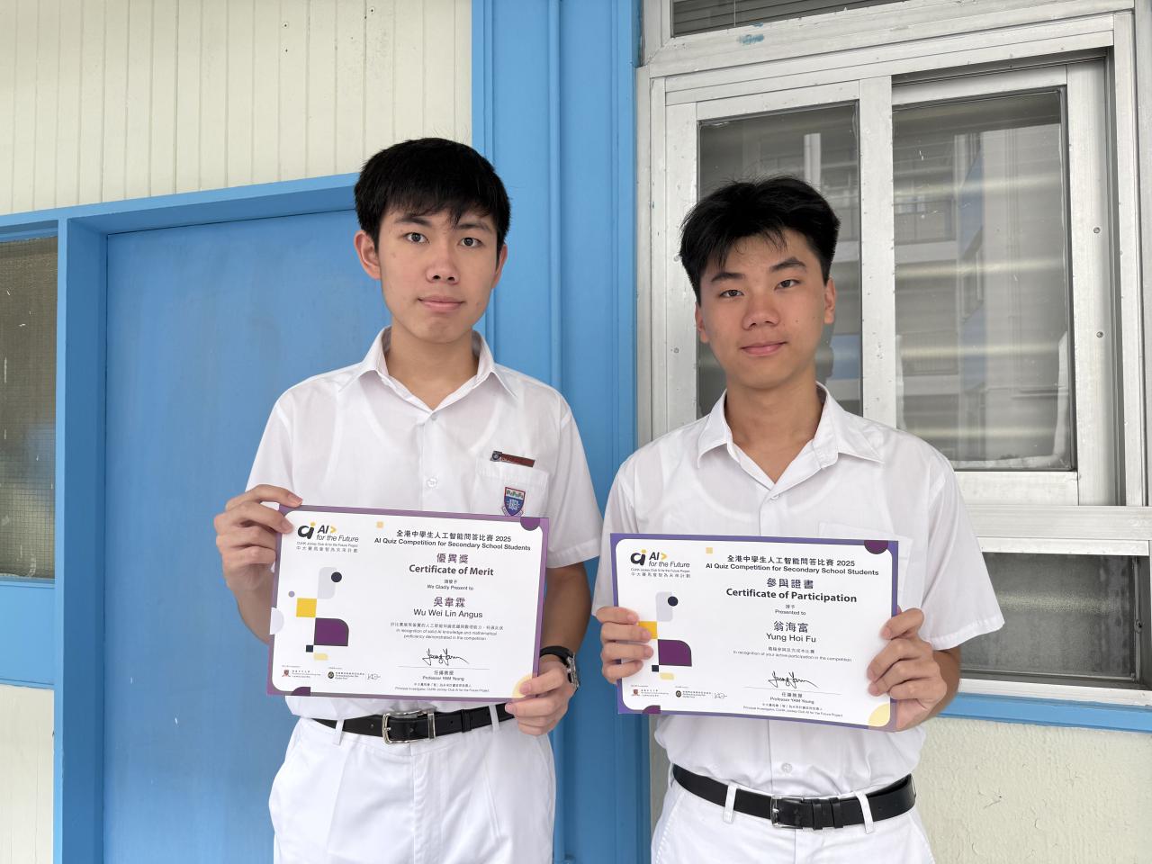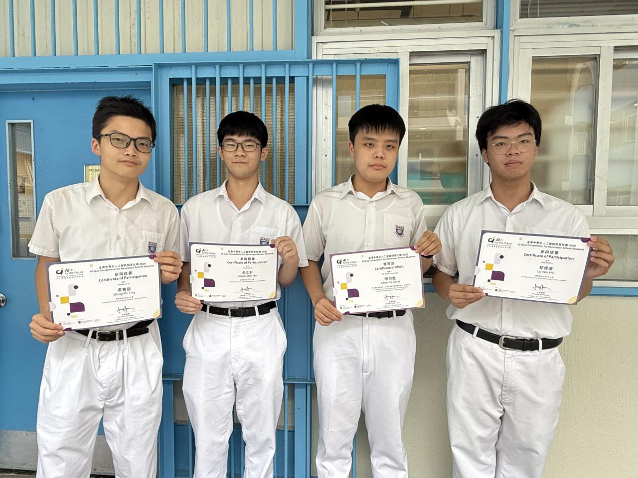 本校八位同學參與中大賽馬會「智」為未來AI for the Future 全港中學生人工智能問答比賽,其中5D許宏錡獲得銅獎、4A陳加進及5D吳韋霖獲得優異獎。