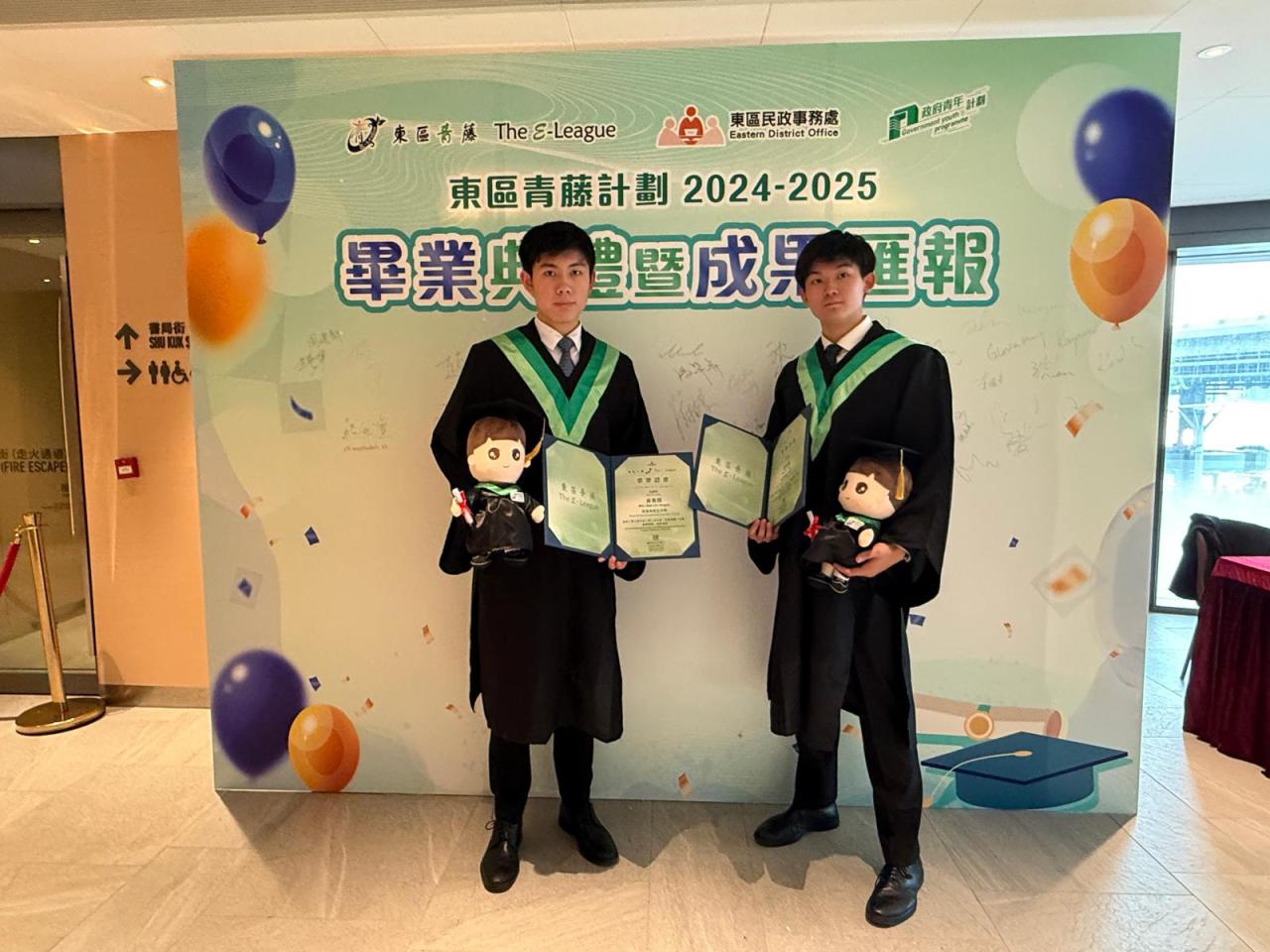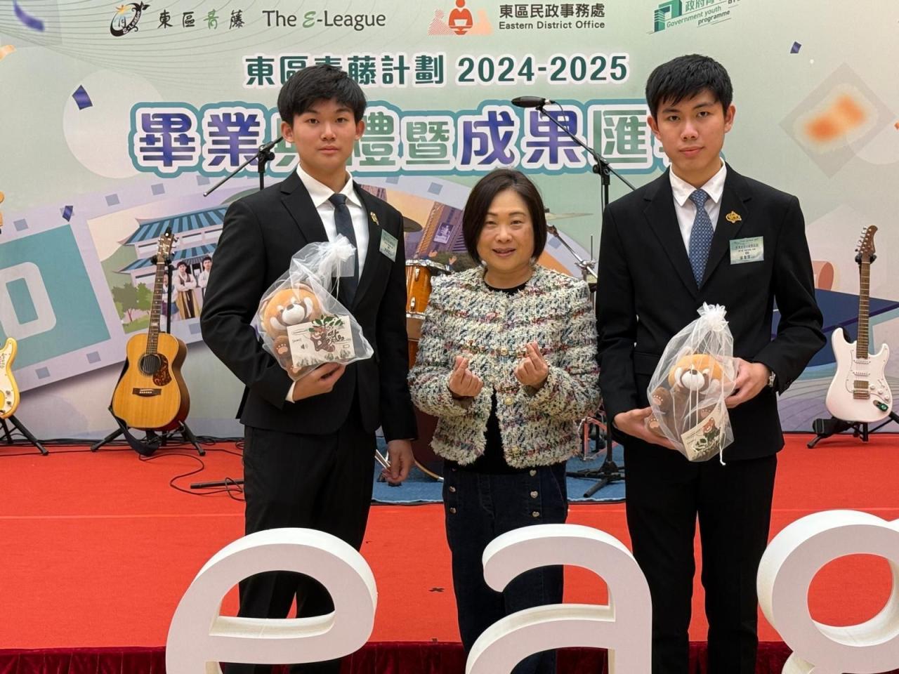 5D吳韋霖及5D吳豪霆從港島東區民政事務處舉辦的「東區青藤計劃」2024/25圓滿畢業,計劃包括文化交流、領袖訓練、社會服務、外地考察等活動,並獲頒畢業證書以示嘉許。同學於過去幾個月本著「助人自助、磨練自己、回饋社會」的精神,充實自己以回饋社會。
