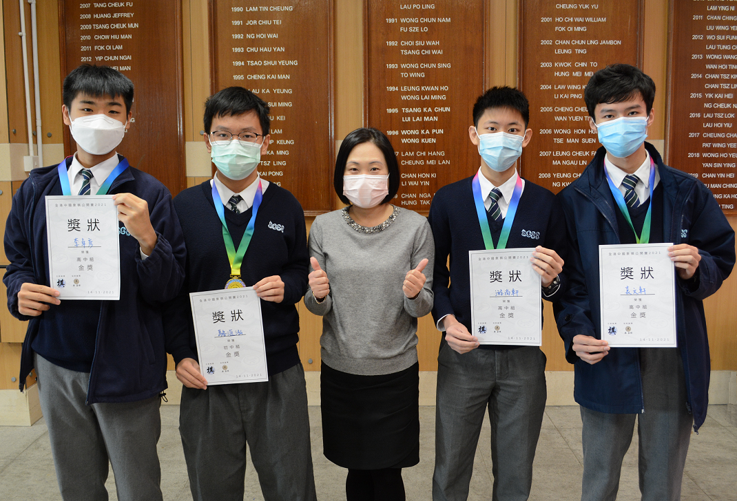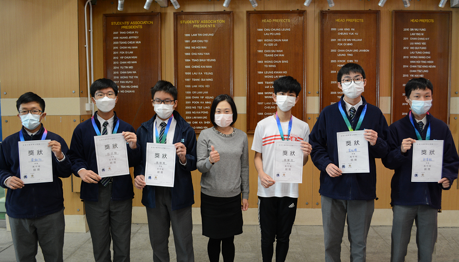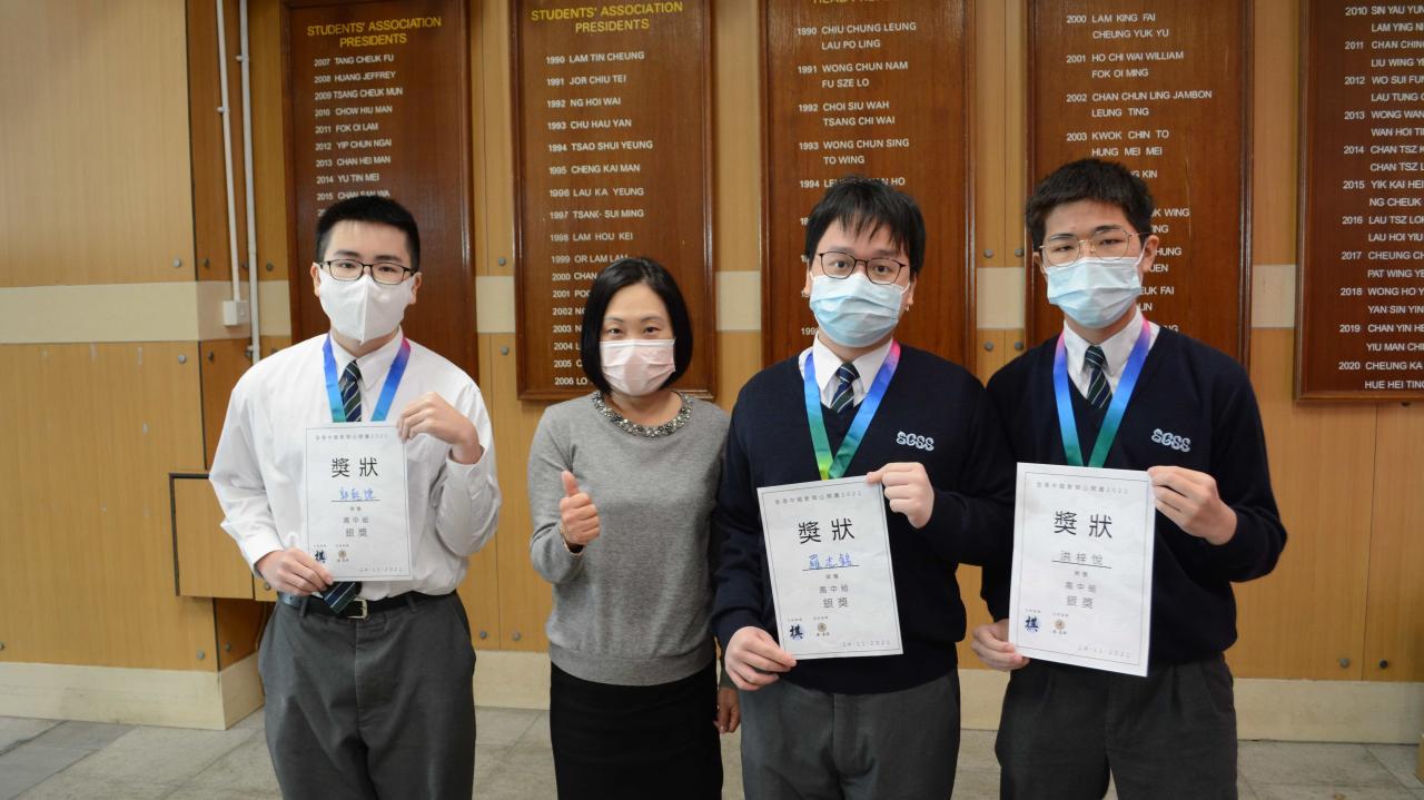 本校5A袁文軒、5B游尚軒及5B李卓彥獲得高中組金獎; 2A駱洭泓獲得初中組金獎; 5B洪梓悅、5B郭乾德及5B羅志銘獲得高中組銀獎; 4A梁傲行、4B許晉銓、4C容弘燁及4D高肇廷獲得高中組銅獎; 3D吳靖晞及3D石子翹獲得初中組銅獎。