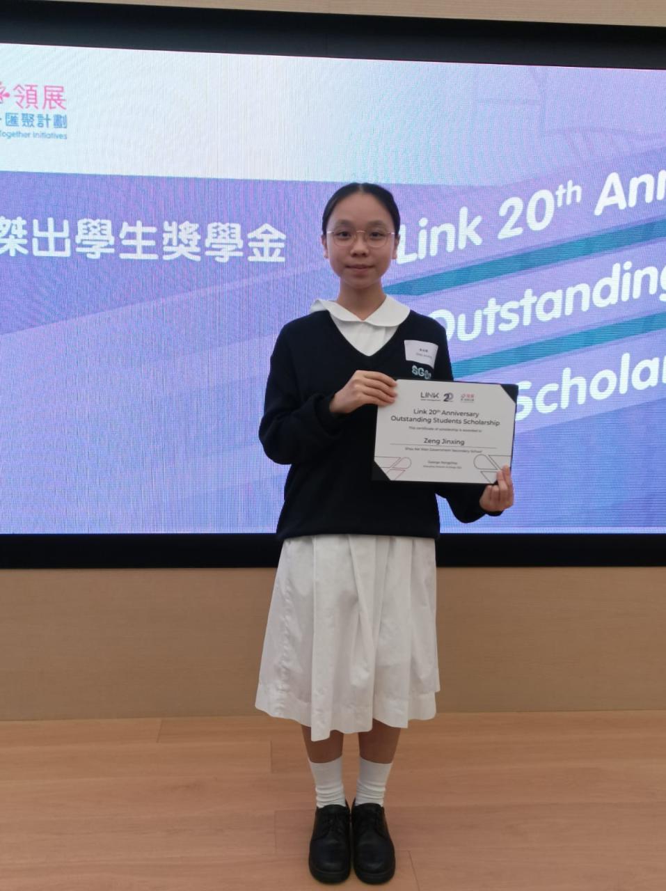 4D曾金星以「文化藝術賦能,共築活齡社區新生態」榮獲領展二十周年傑出學生獎學金。
