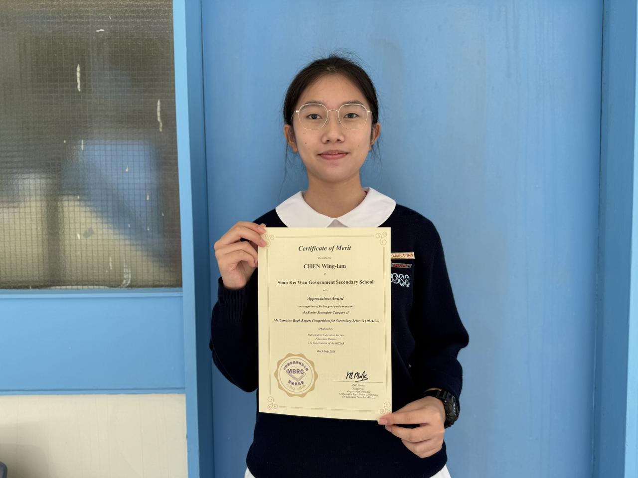 3D 林雨詩獲初中組表揚獎,參考書籍是《數學家的眼光》;4A 陳穎琳及 5D 林樂樂獲高中組表揚獎,參考書籍是《攸關貧富與生死的數學》。