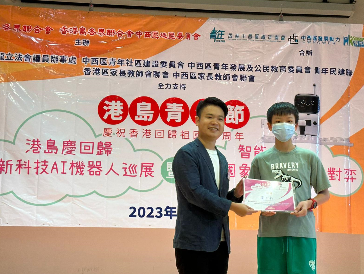 | 2B | 關云彰 | 5/8/2023 | 香港島各界聯合會 | 港島青年節慶祝香港回歸祖國26周年港島慶回歸創新科技AI機器人巡展暨智能之爭:與中國象棋AI機械人對弈 | 季軍 |