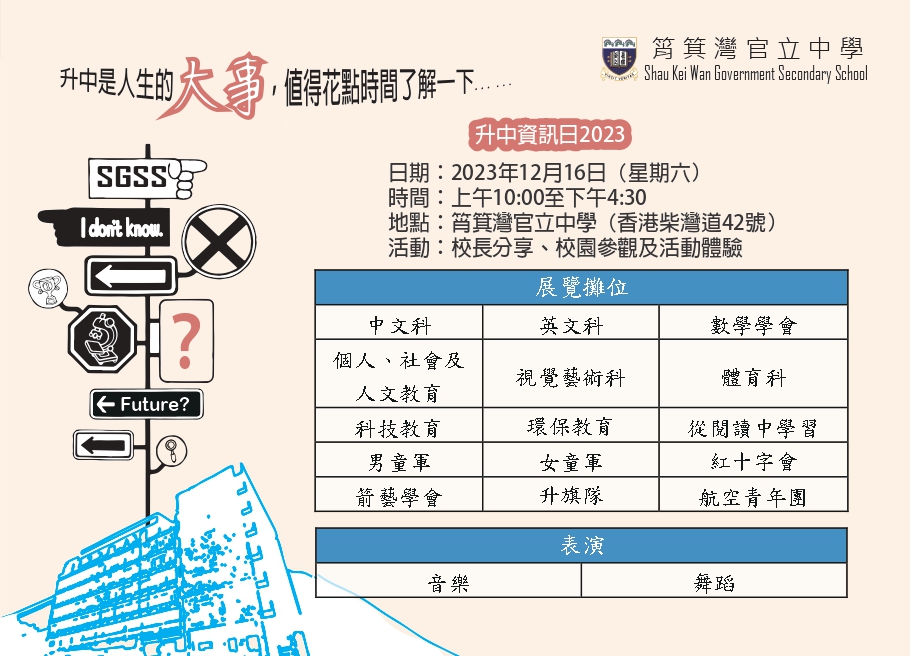 本校於2023年12月16日(星期六)舉行之「升中資訊日2023」,各場次已經截止報名。本校將於12月13日(星期三)前會以電郵確認參加講座的場次及發出電子入場證。如有任何查詢及登記報名,歡迎致電本校(25603544)與陳小姐聯絡。