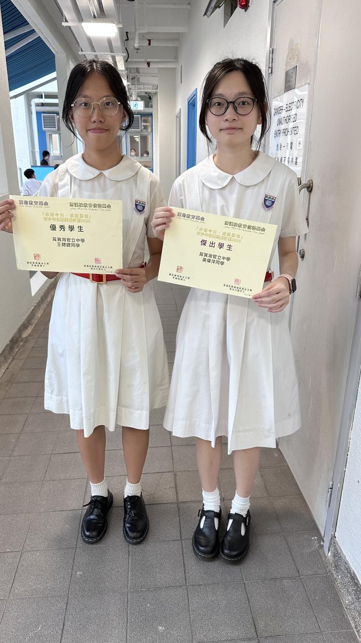 6D黃偉萍榮獲「傑出學生」獎學金$5,000及6D 王鍶鍶榮獲「優秀學生」獎,獲獎學金$1,000。