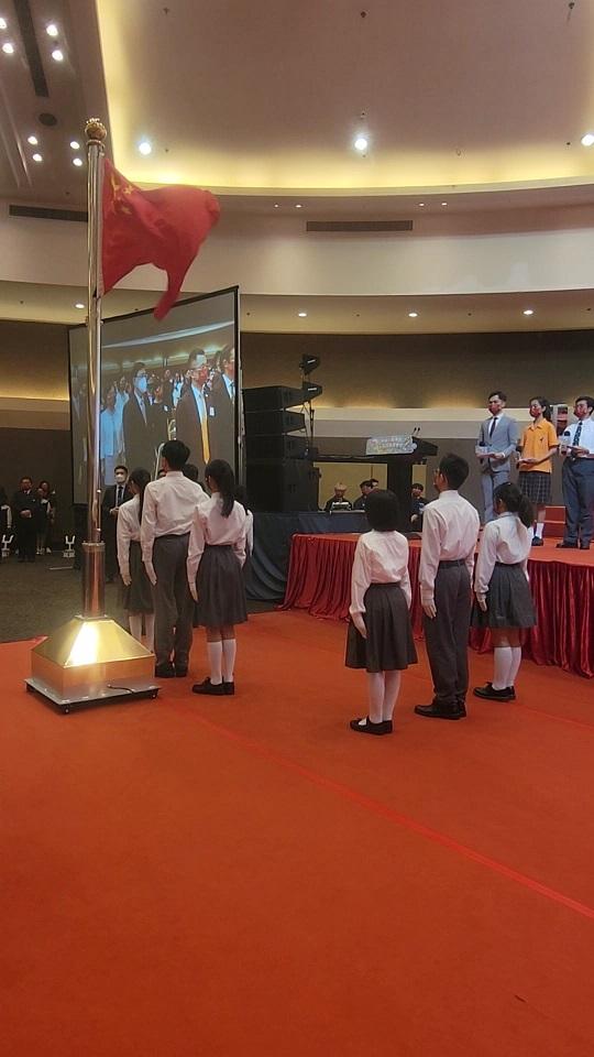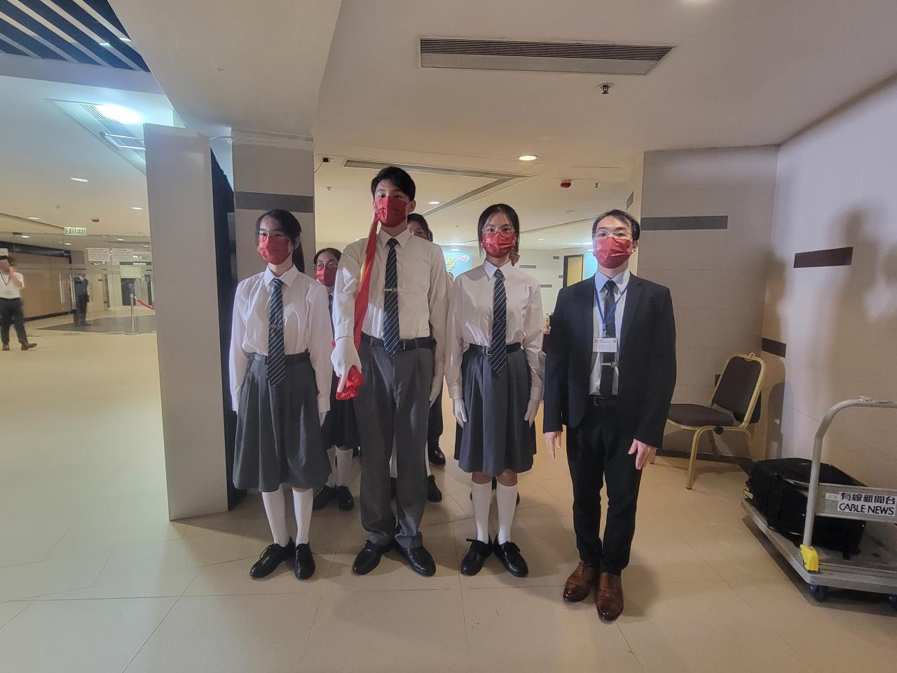 本校升旗隊有幸獲邀出席本年9月15日由敬師運動委員會及教育局舉辦的「敬師日慶典暨表揚狀頒發典禮2022」,並主持升國旗典禮。本校升旗隊隊員以中式步操莊嚴進場,護旗方陣整齊的隊列、升旗手威武的揚旗英姿,令嘉賓們留下深刻的印象,其表現更獲得主禮嘉賓的讚賞,表現卓越。