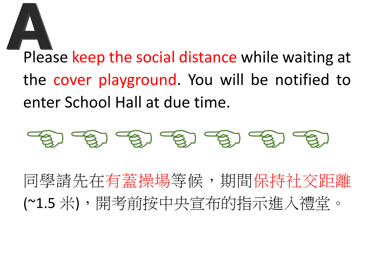 2.同學先在有蓋操場等候,讓他們在進入試場前可保持社交距離。