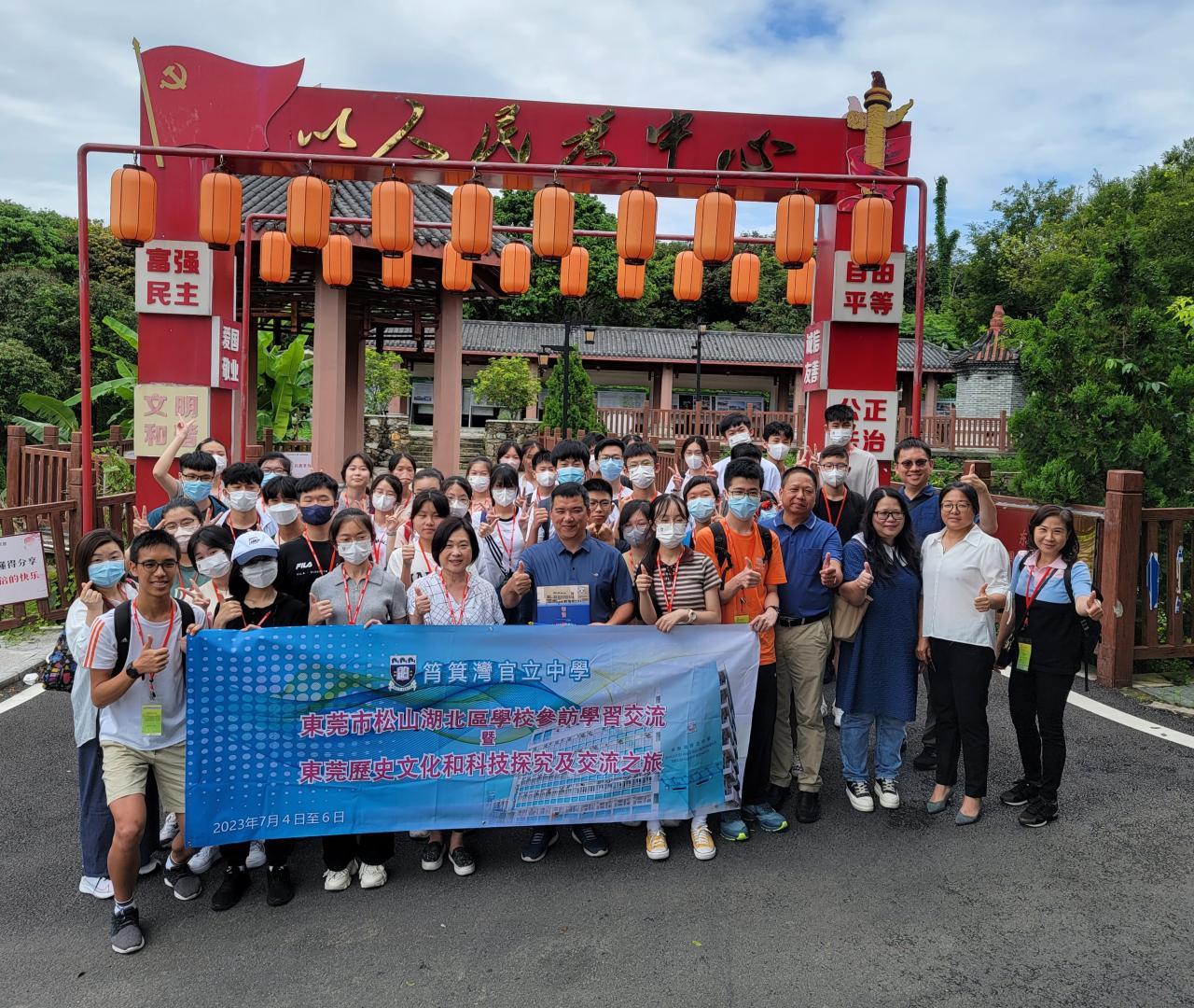 2023東莞市松山湖北區學校參訪暨東莞歷史文化和科技探究交流之旅(4/7-6/7)已圓滿舉行。我校師生一行四十四人在殷校長、何副校長、曾老師及徐老師的領導下,精神奕奕、浩浩蕩蕩乘坐高鐵前往東莞市。三天行程非常緊湊,其中參訪姊妹學校松山湖北區學校為重點活動。我校同學有幸參與「走進課室」的分組觀課活動,包括語文課及捧球課,與北區學校同學作互動交流。期間亦參觀學生成長中心、AI科技館、資源互動中心、中醫館、美術室及陶瓷燒製室等設施,讓同學眼界大開;最後由我校師生以英語介紹本港特色、肉视频區的古今變化及本校的歷史。兩校師生藉此寶貴學習交流考察機會,促進兩校學術文化交流,提升教師專業水平,加強本校師生對國家教育的了解,以及擴濶學生視野,實在獲益良多。其後,同學參訪萬誠彩印包裝公司,由何偉文校友親身分享在國內營商的寶貴經歷。之後,參觀力嘉國際環保包裝印刷產業園,了解國家科技及環保的最新發展。其他參觀景點包括清溪鐵場客家圍、東莞市中共黨史教育基地、廣東東江縱隊紀念館、海戰博物館、威遠炮台及鴉片戰爭博物館等,讓師生親眼目睹國家的最新發展、見證當地歷史文化古蹟的承傳,體驗尖端科技的高速發展,實踐全方位學習精神,亦有助提升學生的國民身份認同。