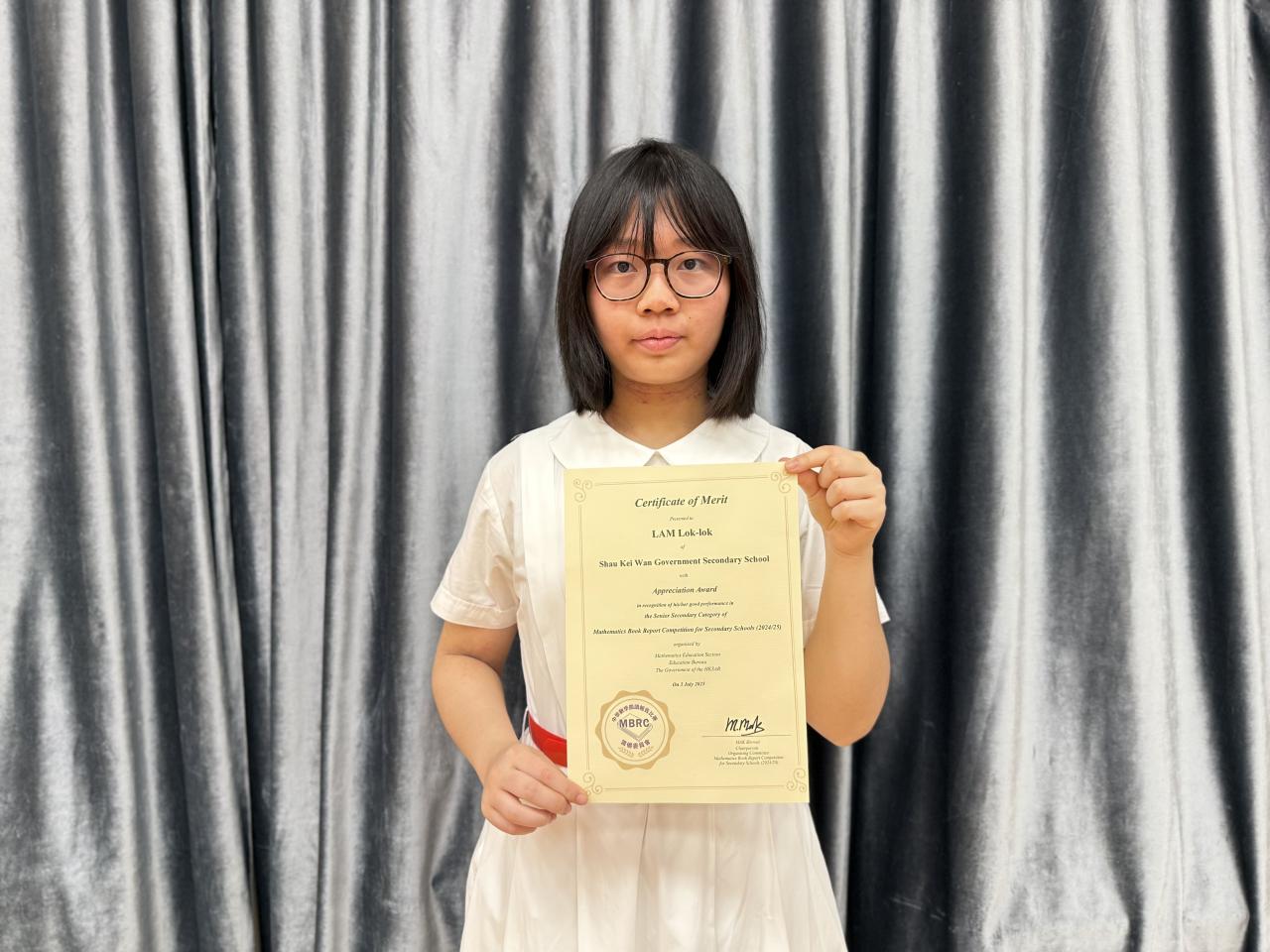 3D 林雨詩獲初中組表揚獎,參考書籍是《數學家的眼光》;4A 陳穎琳及 5D 林樂樂獲高中組表揚獎,參考書籍是《攸關貧富與生死的數學》。