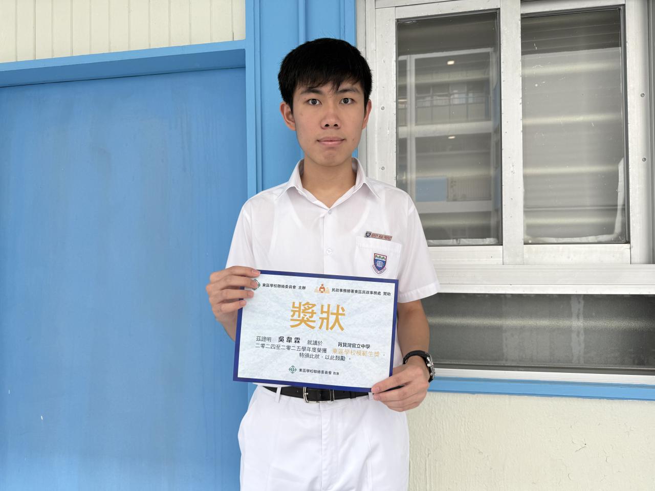 2D李樂誠、3D賴峻鋒及5D吳韋霖榮獲由東區學校聯絡委員會主辦的東區學校模範生獎,以表揚同學在品德和學業成績的卓越表現。