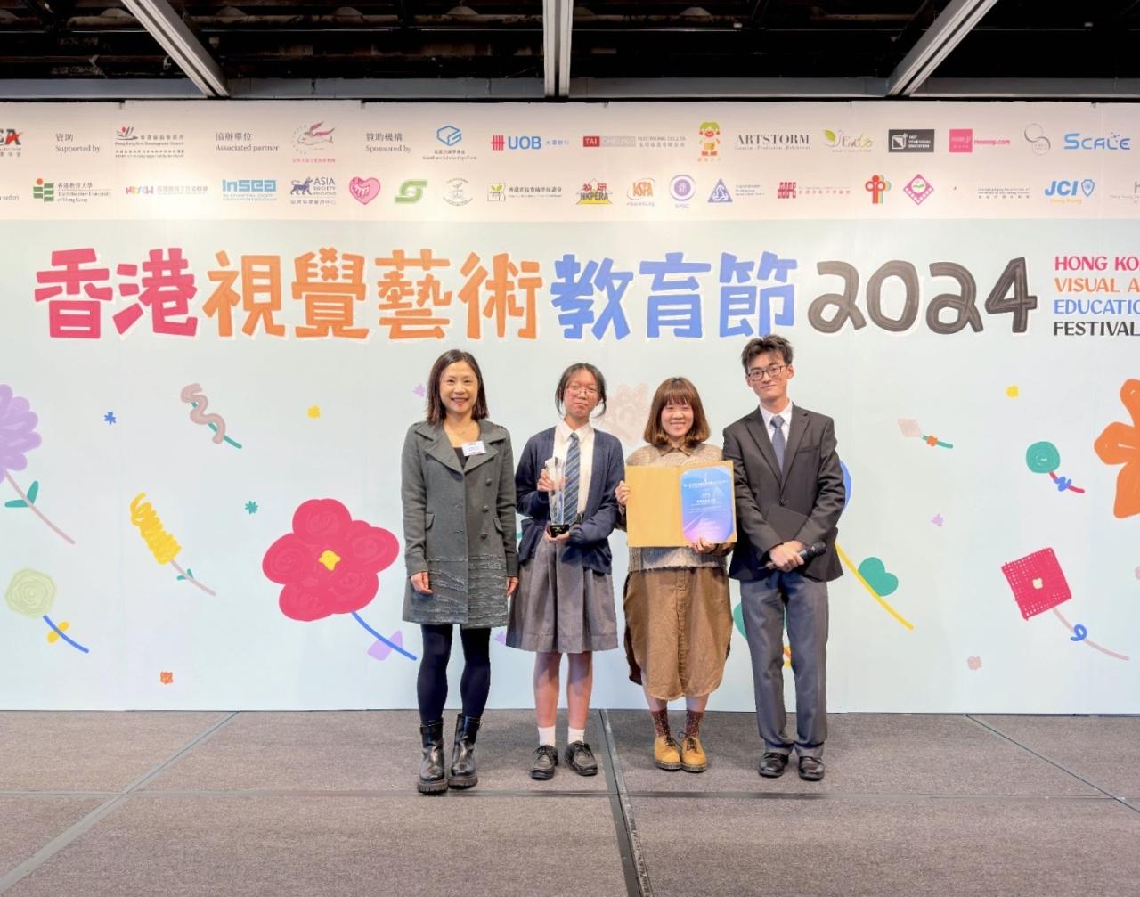 Additionally, Cheung Ming-sen, a student from 5D, served as the Art Ambassador for the Hong Kong Society for Education in Art (HKSEA). He was selected to be one of the emcees at the Hong Kong Visual Arts Education Festival, where his performance received high praise from all members of the HKSEA, as well as from teachers and parents.