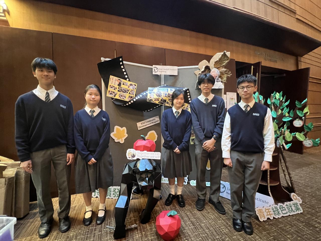 Our students, Lai Tsz-lok (5D), Lo Hoi-yan (5C), Lo Tsz-long (4D), Mak Ian (5D), and Wong Ching-man (5C) participated in the SDGs Creative Solution Design Exhibition organized by the Jane Goodall Institute, Hong Kong. They developed an innovative food waste recycling bin and created an animation to address food waste recycling challenges.