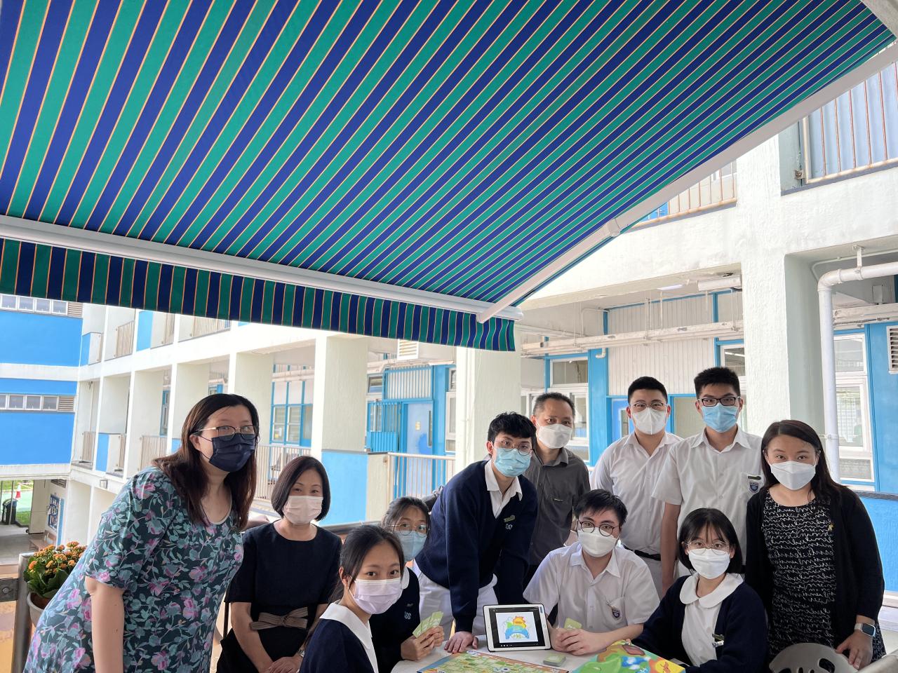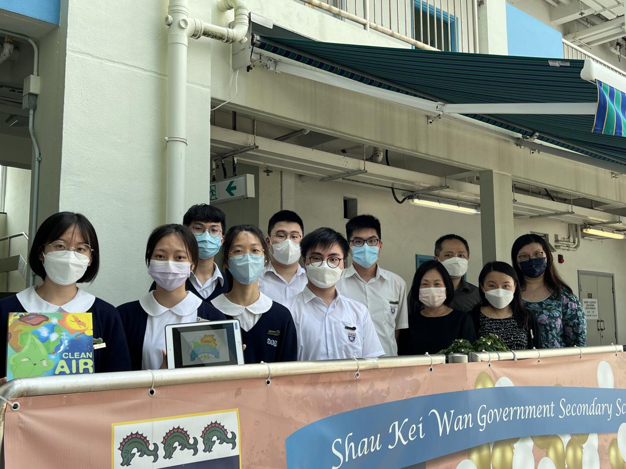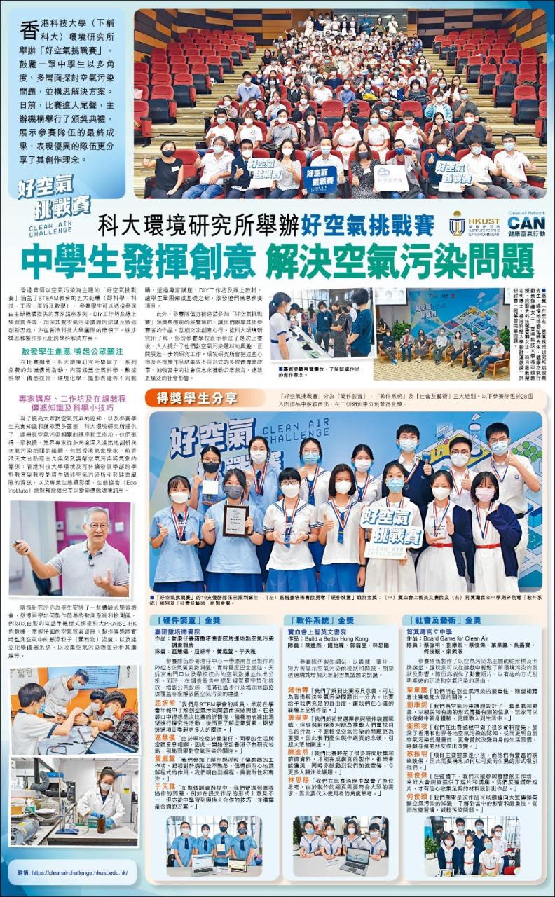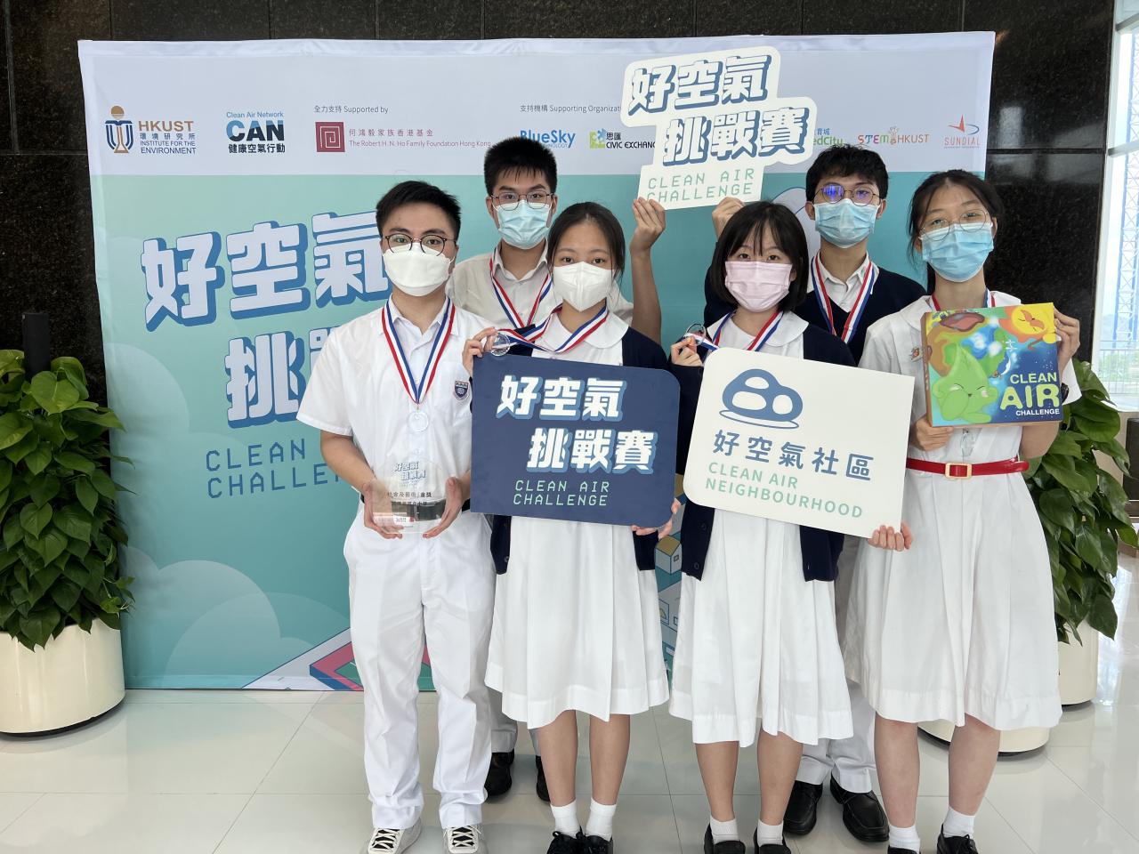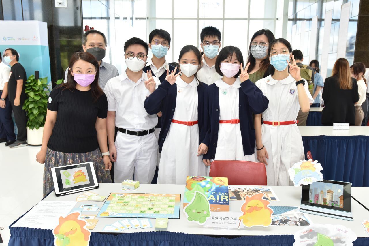 Choi Chun-ming (5D), Lau Connie (5B), Choi Chun-kit (5B), Yip Wai-ting (5B), Ng Angus (5B), He Chun-wing (5A) and Wai Hei Kiu (5B) participated in the Clean Air Challenge organized by HKUST. They designed a board game and an animation about air pollution problems. Not only did they create two mascots for the game, but also dubbed for the animation.